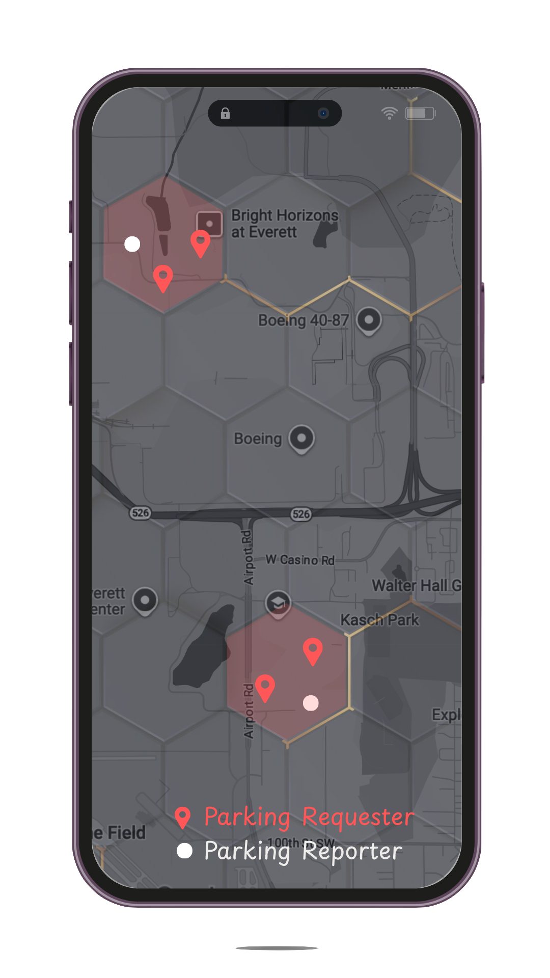 When someone is searching for parking, XPark highlights that area as a red zone on your live, game-style city map — powered by real-time data and AI.